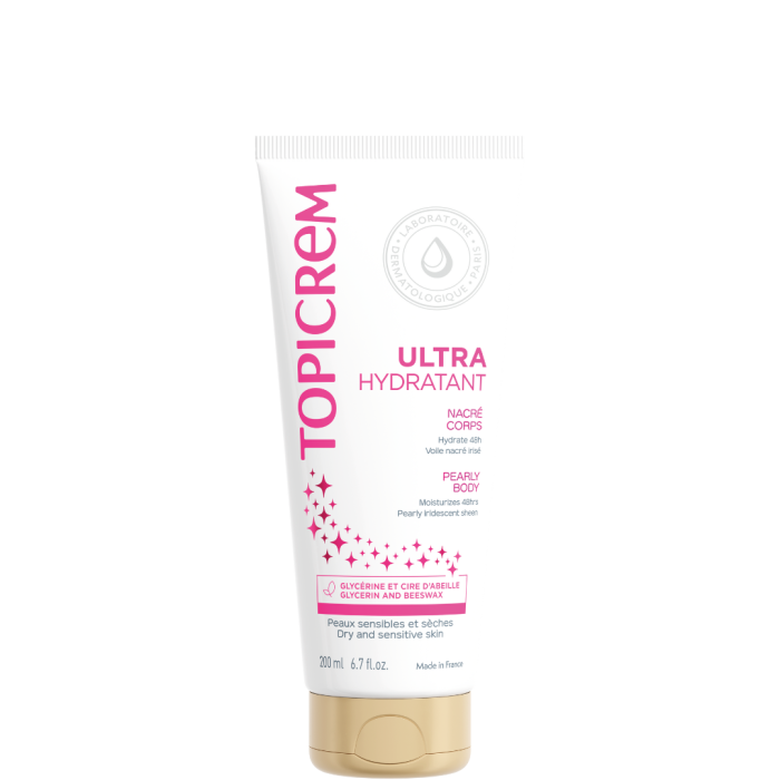 O TOPICREM Ultra Hydratant Leite Corporal Ultra-Hidratante Nacarado não só hidrata, como também ilumina a pele com um delicado efeito nacarado, graças à sua inovadora tecnologia com micro-lâminas refletoras. Este leite hidratante corporal possui uma textura leve que é rapidamente absorvida, sem deixar sensação oleosa, sendo ideal para o cuidado diário da pele sensível.