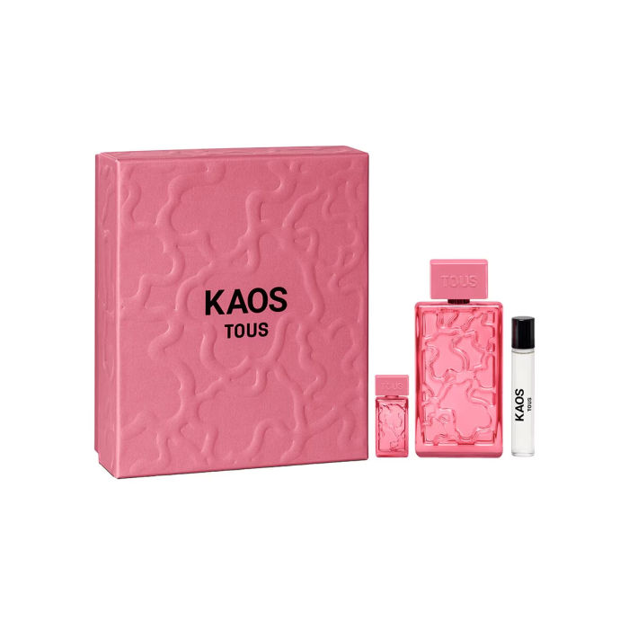 O coffret TOUS Kaos Eau de Parfum é uma homenagem à criatividade e à personalidade da mulher atual. Com vaporizador, esta fragrância encarna um espírito livre e versátil, inspirado na icónica estampa KAOS da TOUS.
