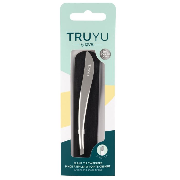 Pinça Truyu em aço inoxidável com ponta biselada e bainha.