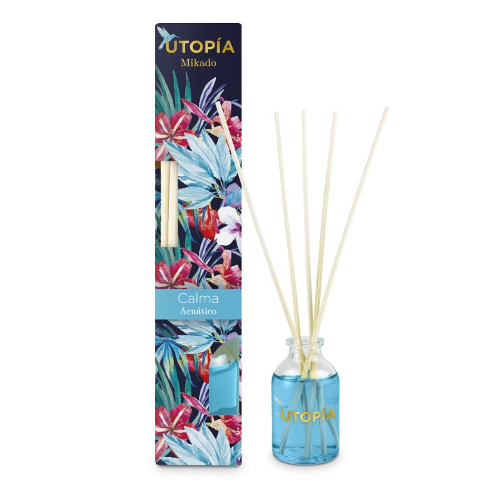 Ambientador Mikado Aquatic Desfrute da frescura das notas aquáticas e marinhas deste perfume inebriante. Ambientador Mikado com canas de rotim, canas coloridas, 0% de álcool, duração +45 dias.
