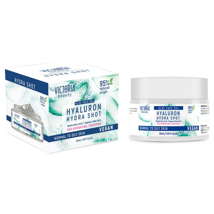 O Gel Facial de Ácido Hialurónico da Victoria Beauty contém sumo de aloé e niacinamida (Vit. B3). Uma combinação de ingredientes estrela que fornece toda a hidratação de que a pele normal e oleosa necessita para um brilho orvalhado, enquanto acalma e refresca para uma aparência saudável e radiante.