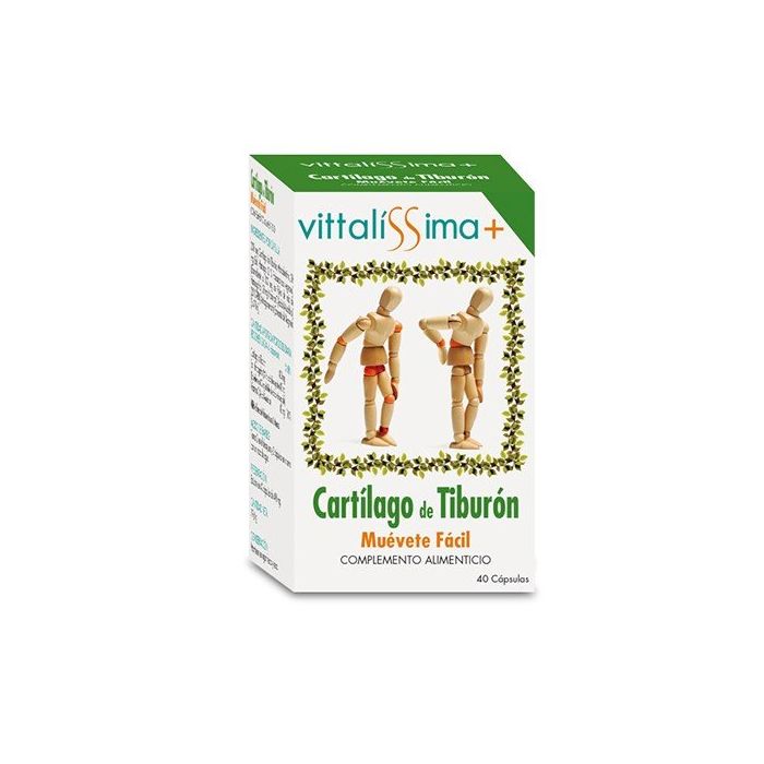 Cartilagem de tubarão Vittalíssima é um suplemento alimentar feito de cartilagem de tubarão, usado para complementar o tratamento de algumas doenças reumáticas, raiz de harpagofit, uma planta que é concedida propriedades anti-inflamatórias, antirreumáticas e analgésicos, e vitamina C, que ajuda a formação normal de colágeno para o funcionamento normal da cartilagem e ossos.