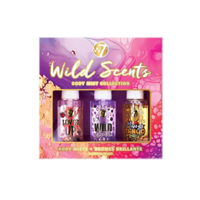 O coffret de Brumas Corporais Wild Scents da W7 oferece uma seleção de brumas corporais em formato prático de 50 ml, ideais para levar contigo.