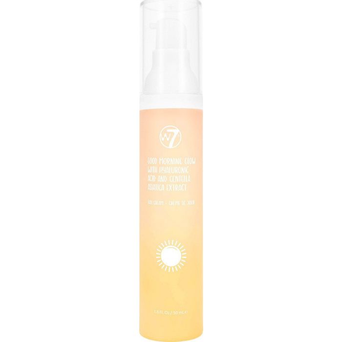 W7 Good Morning Glow Day Cream contém Ácido Hialurónico para suavizar a pele seca e danificada e reduzir o aparecimento de rídulas.