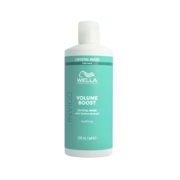 Aumenta o volume do teu cabelo com a Máscara Invigo Volume Boost Crystal da Wella Professionals, uma fórmula energizante mas leve com Extrato de Algodão, Pantenol e Provitamina B5 para deixar o cabelo mais cheio e cuidado. Esta máscara para cabelos claros clarifica e melhora a maleabilidade e o brilho sem deixar o cabelo pesado, ideal para cabelos finos. Formulada com Polímeros Spring Force concebidos para envolver as fibras capilares, estabilizar e ajudar a criar volume quando secas com o secador.
