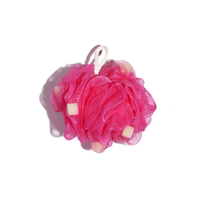 Esponja de banho perfeita para esfoliar a pele, deixando-a mais suave e limpa. Tem um cordão perfeito para a pendurar depois de a utilizar. Corantes aleatórios