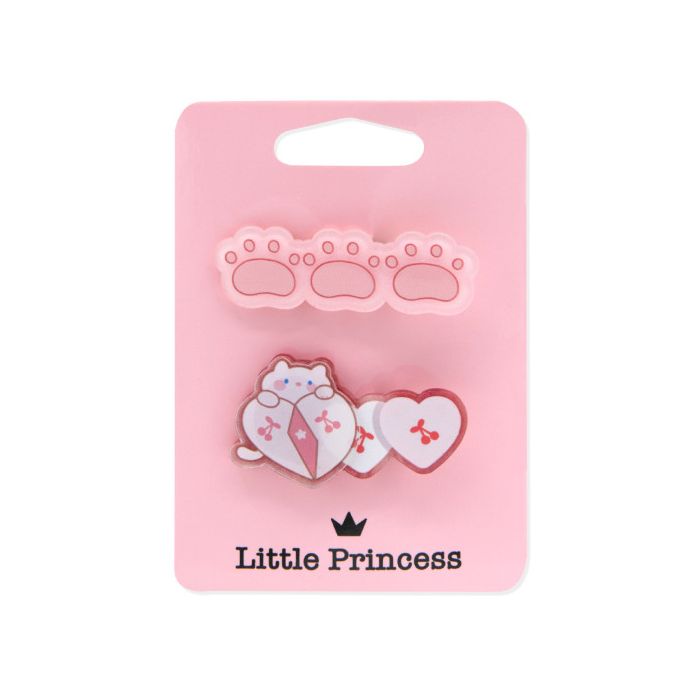 You Are the Princes Little Princess Set 2 Clips Sweats e Corações em acrílico com figuras de cheirar e corações para manter o cabelo no lugar.